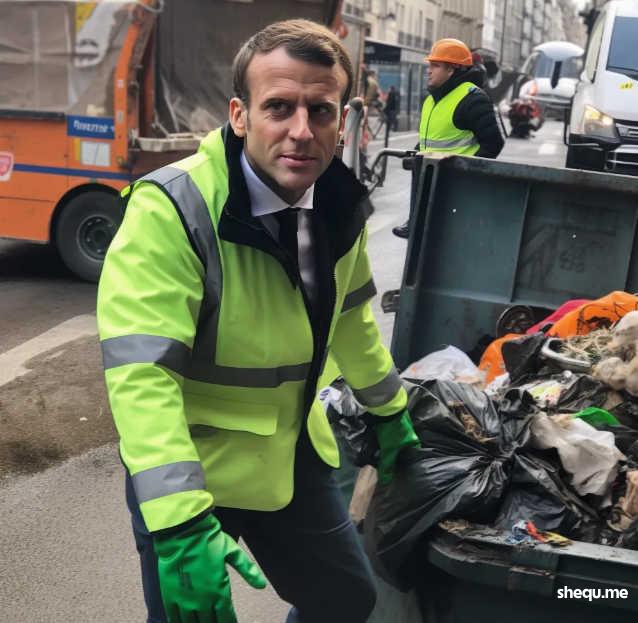 法国总统马克龙变成了路边捡垃圾的流浪汉?